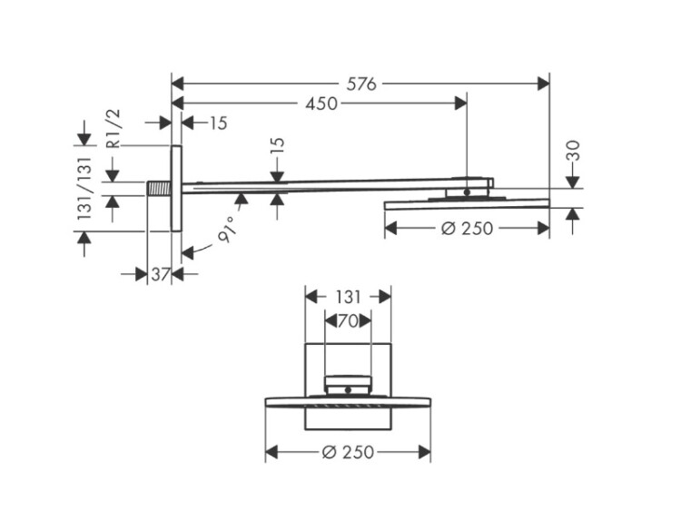 Верхний душ, Axor, Axor ShowerSolutions, тип установки-настенный, ширина, мм-250, глубина, мм-250, высота, мм-30, форма-круглая, количество режимов-1, тип струи-PowderRain, держатель-есть, размер держателя-450, цвет-хром, выдвигающиеся форсунки, материал душевого диска-металл, соединительная резьба G 1/2 Верхний душ, Axor, Axor ShowerSolutions, шгв 250*250*30, цвет-хром