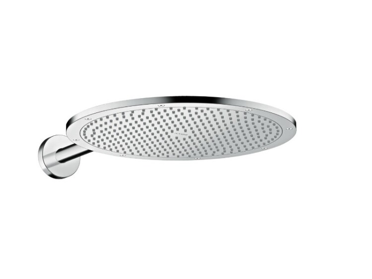 Верхний душ, Hansgrohe, Axor ShowerSolutions, тип установки-настенный, ширина, мм-350, глубина, мм-350, высота, мм-46, форма-круглая, количество режимов-1, тип струи-PowderRain, держатель-есть, размер держателя-390, цвет-полированное золото, полностью хромированный душевой диск, материал душевого диска-металл, соединительная резьба G ½ Верхний душ, Hansgrohe, Axor ShowerSolutions, шгв 350*350*46, цвет-полированное золото