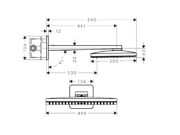 Верхний душ, Axor, Axor Showers, тип установки-настенный, ширина, мм-466, глубина, мм-300, высота, мм-62, форма-прямоугольная, количество режимов-2, тип струи-Rain, RainStream, держатель-есть, размер держателя-460, внутренняя часть-необходимо заказать, цвет-хром Верхний душ, Axor, Axor Showers, шгв 466*300*62, цвет-хром