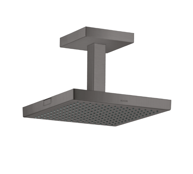 Верхний душ, Axor, Axor ShowerSolutions, тип установки-потолочный, размер душевого диска, мм-240*240, форма-квадратная, количество режимов-1, тип струи-RainAir, держатель-есть, размер держателя-102, материал-металл, соединительная резьба G 1/2, цвет-шлифованный черный хром Верхний душ, Axor, Axor ShowerSolutions, 240*240, цвет-шлифованный черный хром