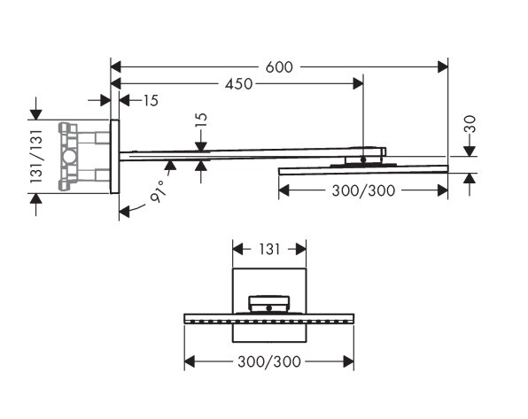 Верхний душ, Axor, Axor ShowerSolutions, тип установки-настенный, размер душевого диска, мм-300*300, форма-квадратная, количество режимов-2, тип струи-PowderRain, Intense PowderRain, держатель-в комплекте, размер держателя, мм-450, внутренняя часть-необходимо заказать, цвет-медь шлифованная Верхний душ, Axor, Axor ShowerSolutions, 300*300, цвет-медь шлифованная