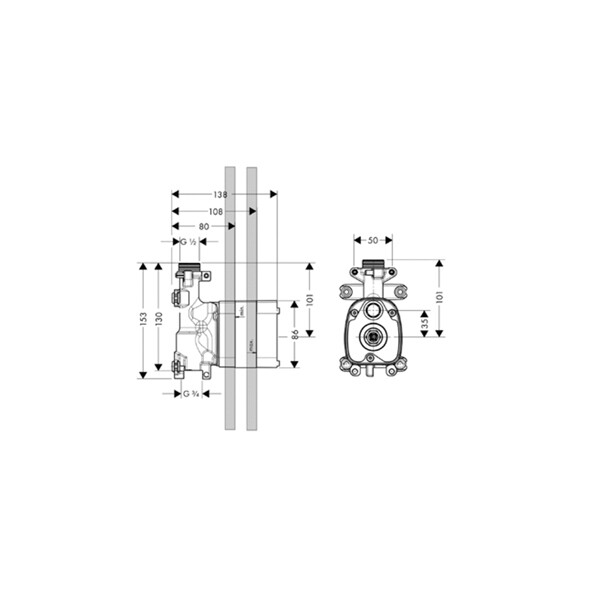 Внутренняя часть, Axor, Axor ShowerSolutions, назначение-для ручного душа, стандарт подвода воды-1/2", комплектация-с керамическим вентилем 180° Внутренняя часть, Axor, Axor ShowerSolutions, для ручного душа