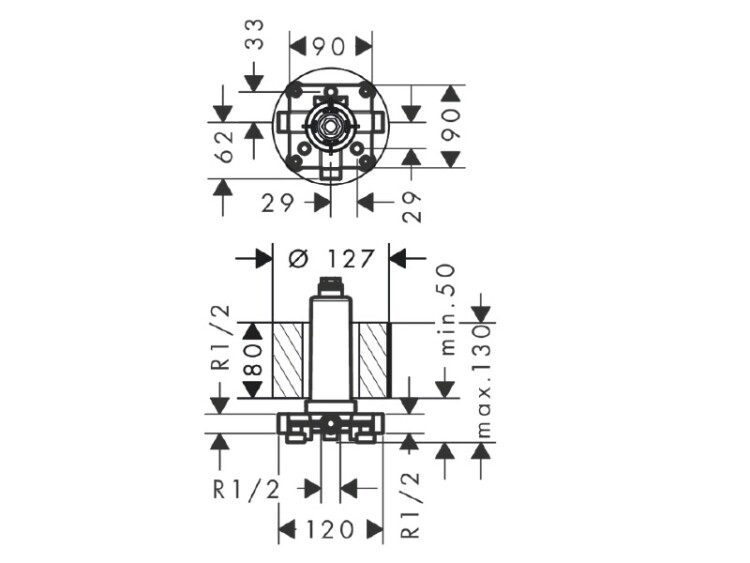 Внутрення часть, Hansgrohe, Axor, назначение-для верхнего душа, стандарт подвода воды-1/2" Внутрення часть, Hansgrohe, Axor, назначение-для верхнего душа