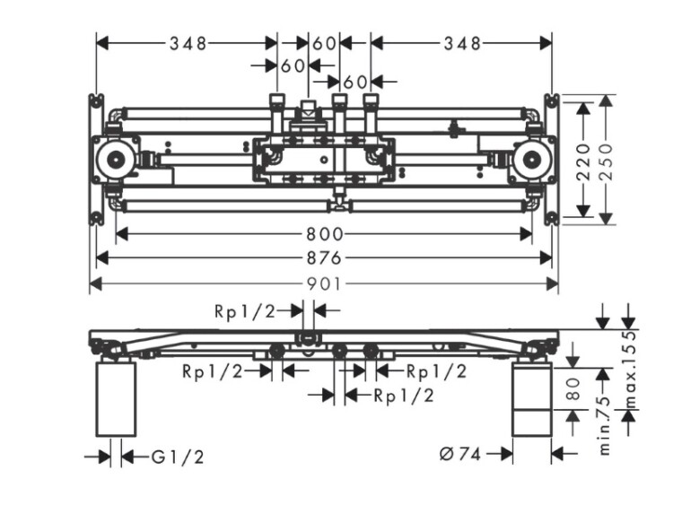 Внутрення часть, Hansgrohe, Axor ShowerSolutions, назначение-для смесителя, ShowerHeaven 1200 / 300 4jet, звукоизолирующий монтаж Внутрення часть, Hansgrohe, Axor ShowerSolutions, для смесителя ShowerHeaven