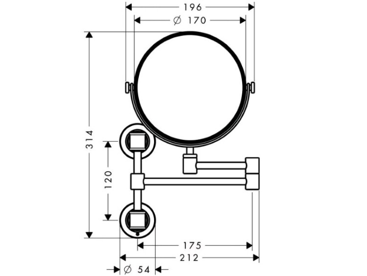 Косметическое зеркало, Hansgrohe, Axor Montreux, ширина, мм-170, высота, мм-170, тип установки-настенный, без подсветки, увеличение, х-1,7, материал-металл, цвет-полированный никель, поворотное, наклоняемое Косметическое зеркало, Hansgrohe, Axor Montreux, цвет-полированный никель