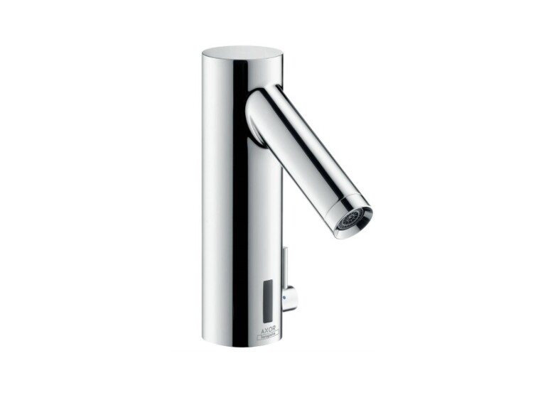 Смеситель для раковины, Hansgrohe, Axor Starck, тип открывания воды-электронный, отверстия для монтажа-1, высота, мм-177, вынос излива, мм-103, цвет-шлифованный черный хром, с регулировкой температуры, питание от сети 230 V Смеситель для раковины, Hansgrohe, Axor Starck, цвет-шлифованный черный хром