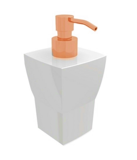 Дозатор для жидкого мыла, Bertocci, Grace, механический (нажимной), ширина, мм-80, глубина, мм-80, высота, мм-160, тип установки-настольный/настенный, держатель для настенного монтажа-необходимо заказать, материал колбы-керамика, цвет колбы-белый, цвет дозатора-золото розовое Дозатор для жидкого мыла, Bertocci, Grace, шгв 80*80*160, цвет-белый/золото розовое