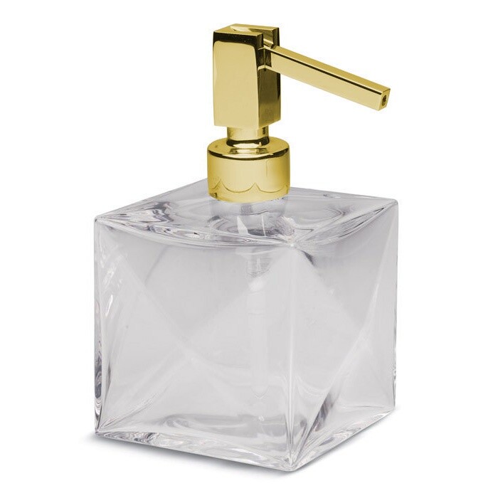 Дозатор для жидкого мыла, Bertocci, Grimilde, механический (нажимной), ширина, мм-106, глубина, мм-106, высота, мм-160, тип установки-настольный (свободностоящий), материал колбы-хрусталь, цвет колбы-прозрачный, цвет дозатора-золото Дозатор для жидкого мыла, Bertocci, Grimilde, шгв 106*106*160, цвет дозатора-золото