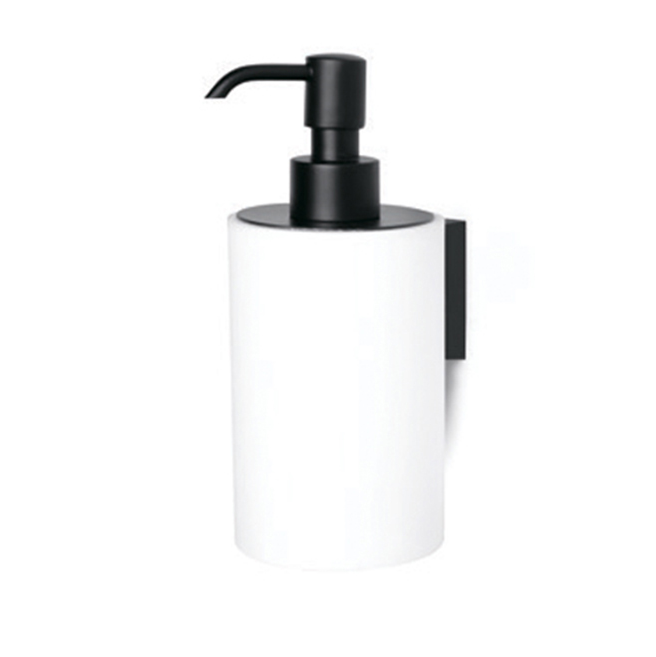 Дозатор для жидкого мыла, Bertocci, Trecento, механический (нажимной), ширина, мм-70, глубина, мм-80, высота, мм-180, тип установки-настольный (свободностоящий), материал колбы-композит, цвет колбы-белый матовый, цвет дозатора-черный матовый (Matt Black, Nero Opaco) Дозатор для жидкого мыла, Bertocci, Trecento, шгв 70*80*180, цвет дозатора-черный матовый (Matt Black, Nero Opaco)
