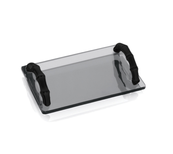 Поднос, Bertocci, Guccio, ширина, мм-220, глубина, мм-40, высота, мм-140, материал-стекло, с бамбуковыми ручками, цвет-серый/черный матовый Поднос, Bertocci, Guccio, шгв 220*40*140, с бамбуковыми ручками, цвет-серый/черный матовый
