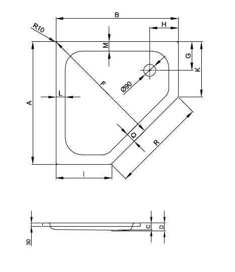Душевой поддон, Bette, BetteCaro, тип установки-встраиваемый, ширина, мм-900, глубина, мм-900, высота, мм-35, форма-пятиугольная, сифон-необходимо заказать, диаметр слива, мм-90, ножки-необходимо заказать, материал-сталь, включает звукопоглощающие пластины для снижения уровня шума, цвет-белый Душевой поддон, Bette, BetteCaro, шгв 900*900*35, цвет-белый