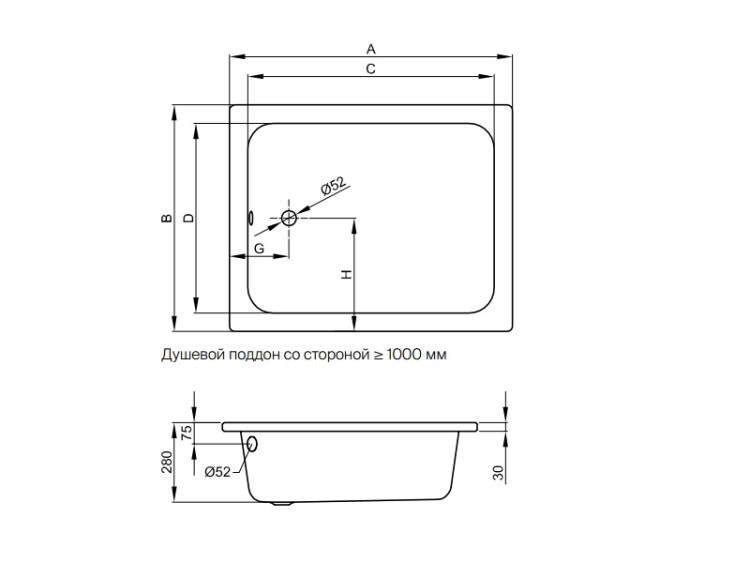 Душевой поддон, Bette, BetteDelta, ширина, мм-1000, глубина, мм-1000, высота, мм-280, форма-квадратная, сифон-необходимо заказать, диаметр слива, мм-52, материал-сталь, цвет-белый Душевой поддон, Bette, BetteDelta, шгв 1000*1000*280, цвет-белый