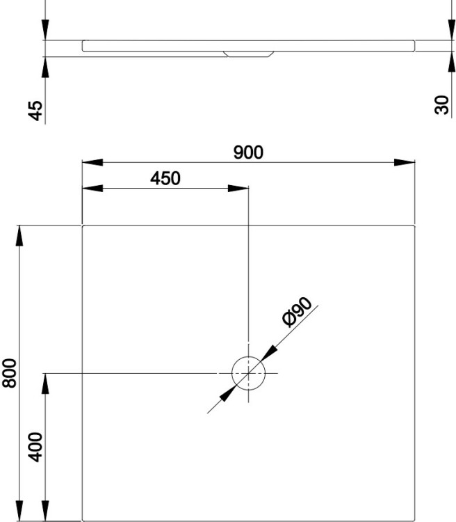 Душевой поддон, Bette, BetteFloor, тип установки-встраиваемый, ширина, мм-900, глубина, мм-800, высота, мм-45, форма-прямоугольная, сифон-необходимо заказать, диаметр слива, мм-90, ножки-необходимо заказать, материал-сталь, с антислипом, цвет-белый Душевой поддон, Bette, BetteFloor, шгв 900*800*45, с антислипом, цвет-белый