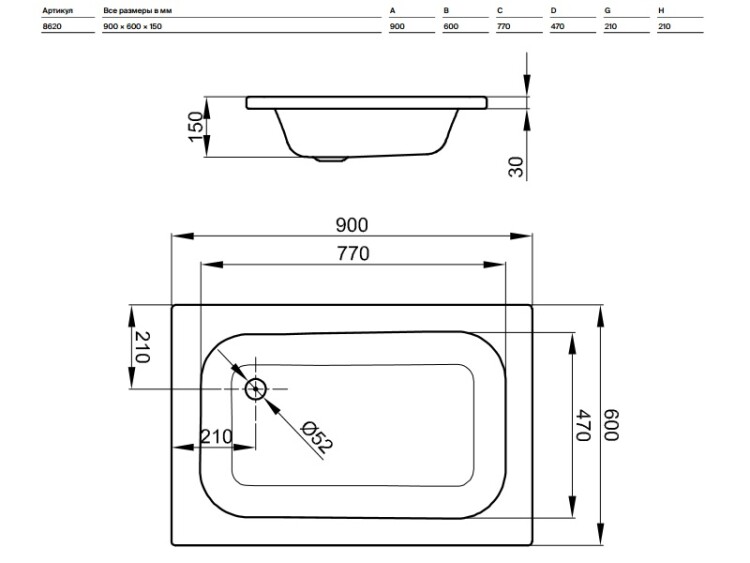 Душевой поддон, Bette, BetteIntra, ширина, мм-900, глубина, мм-600, высота, мм-150, форма-прямоугольная, диаметр слива, мм-52, ножки-необходимо заказать, опорная рама-необходимо заказать, цвет-белый Душевой поддон, Bette, BetteIntra, шгв 900*600*150, цвет-белый