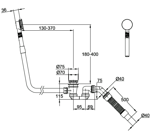 Слив-перелив, Bette, BetteMono Silhouette, для ванны, автоматический (Click-clack), диаметр слива, мм-52, в комплекте-гибкая подводка для сточных вод, материал-сталь/эмаль, цвет-Ebony matt Слив-перелив, Bette, BetteMono Silhouette, для ванны, автоматический (Click-clack), цвет-Ebony matt