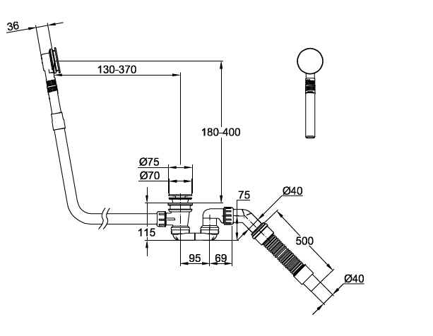 Слив-перелив, Bette, BetteMono Silhouette, для ванны, автоматический (Click-clack), диаметр слива, мм-52, в комплекте-гибкая подводка для сточных вод, материал-сталь/эмаль, цвет-Midnight Слив-перелив, Bette, BetteMono Silhouette, для ванны, автоматический (Click-clack), цвет-Midnight