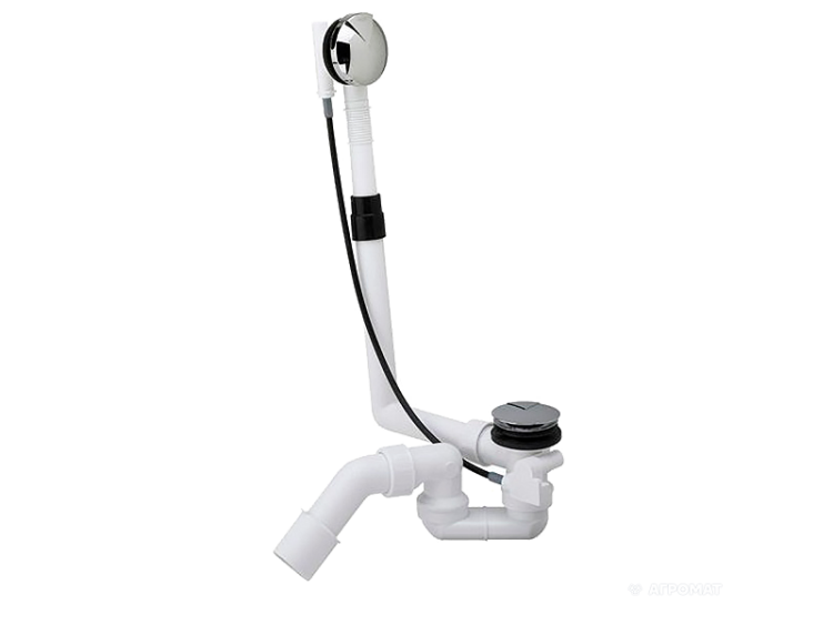 Слив-перелив, Bette, для ванны, полуавтоматический, длина троса, мм-560, диаметр слива, мм-52, накладки-есть, цвет-хром Слив-перелив, Bette, для ванны, длина троса, мм-560, цвет-хром