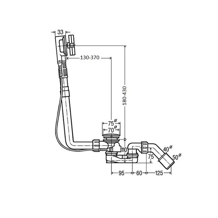 Слив-перелив, Bette, для ванны, полуавтоматический, длина троса, мм-725, диаметр слива, мм-52, материал-пластик, цвет-белый Слив-перелив, Bette, для ванны, длина троса, мм-725, цвет-белый