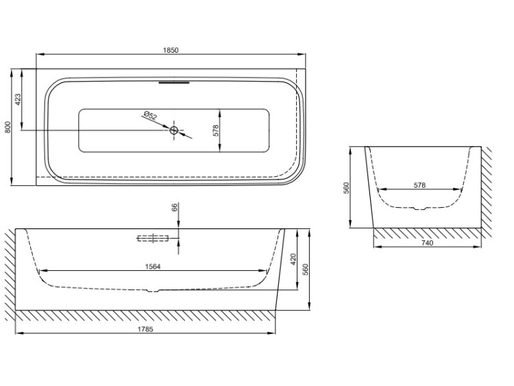 Ванна, Bette, BetteArt IV, ширина, мм-1850, глубина, мм-800, высота, мм-420, водоизмещение (л)-248, тип установки-пристенный/угловой, форма-прямоугольная, панель-есть, слив-перелив-необходимо заказать, диаметр слива, мм-52, цвет-белый Ванна, Bette, BetteArt IV, шгв 1850*800*420, цвет-белый