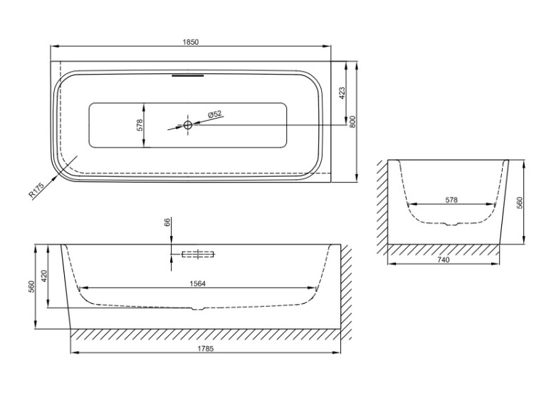 Ванна, Bette, BetteArt V, ширина, мм-1850, глубина, мм-800, высота, мм-420, водоизмещение (л)-248, форма-прямоугольная, слив-перелив-необходимо заказать, диаметр слива, мм-52, цвет-белый Ванна, Bette, BetteArt V, шгв 1850*800*420, цвет-белый
