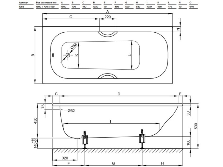 Ванна, Bette, BetteClassic, ширина, мм-1500, глубина, мм-700, высота, мм-450, водоизмещение (л)-108, форма-прямоугольная, слив-перелив-необходимо заказать, диаметр слива, мм-52, цвет-белый, включает звукопоглощающие пластины для снижения уровня шума Ванна, Bette, BetteClassic, шгв 1500*700*450, цвет-белый