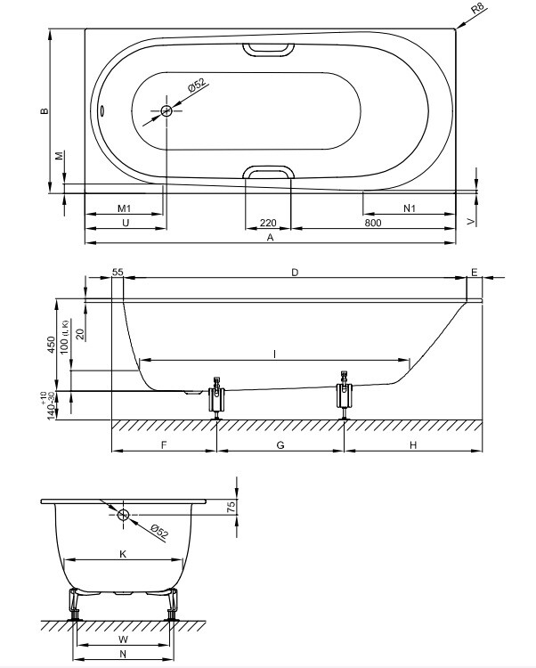 Ванна, Bette, BetteComodo, ширина, мм-1700, глубина, мм-750, высота, мм-450, водоизмещение (л)-155, тип установки-встраиваемый, форма-прямоугольная, слив-перелив-необходимо заказать, диаметр слива, мм-52, ножки-необходимо заказать, материал-сталь, включает звукопоглощающие пластины, цвет-Snow Ванна, Bette, BetteComodo, шгв 1700*750*450, цвет-Snow