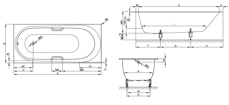 Ванна, Bette, BetteComodo, ширина, мм-1700, глубина, мм-750, высота, мм-450, водоизмещение (л)-155, тип установки-встраиваемый/пристенный, форма-прямоугольная, слив-перелив-необходимо заказать, диаметр слива, мм-52, ножки-необходимо заказать, материал-сталь, с антислипом Sense, включает звукопоглощающие пластины, цвет-белый Ванна, Bette, BetteComodo, шгв 1700*750*450, с антислипом Sense, цвет-белый