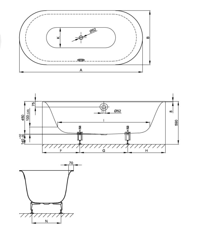 Ванна, Bette, BetteLux Oval, ширина, мм-1700, глубина, мм-750, высота, мм-450, водоизмещение (л)-150, тип установки-встраиваемый, форма-овальная, слив-перелив-необходимо заказать, диаметр слива, мм-52, ножки-необходимо заказать, материал-сталь, вид грязеотталкивающего покрытия-BetteGlasur® Plus, цвет-белый Ванна, Bette, BetteLux Oval, шгв 1700*750*450, BetteGlasur® Plus, цвет-белый