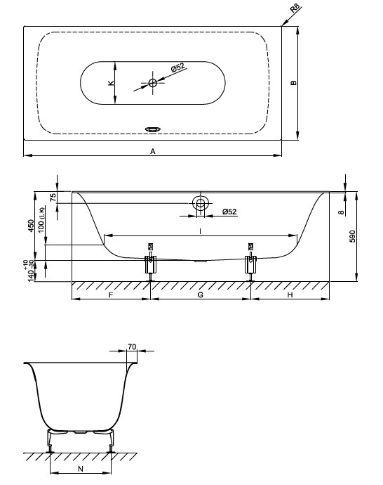Ванна, Bette, BetteLux, ширина, мм-1800, глубина, мм-800, высота, мм-450, водоизмещение (л)-185, тип установки-встраиваемый/пристенный, форма-прямоугольная, слив-перелив-необходимо заказать, диаметр слива, мм-52, ножки-необходимо заказать, материал-сталь, включает звукопоглощающие пластины для снижения уровня шума, цвет-белый Ванна, Bette, BetteLux, шгв 1800*800*450, цвет-белый