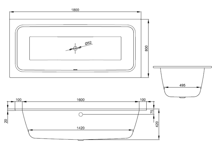 Ванна, Bette, BetteOne, ширина, мм-1800, глубина, мм-800, высота, мм-420, водоизмещение (л)-158, тип установки-встраиваемый, форма-прямоугольная, слив-перелив-необходимо заказать, диаметр слива, мм-52, ножки-необходимо заказать, материал-сталь, цвет-белый Ванна, Bette, BetteOne, шгв 1800*800*420, цвет-белый