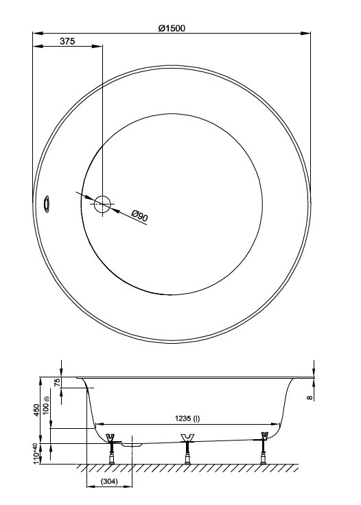 Ванна, Bette, BettePond, ширина, мм-1500, глубина, мм-1500, высота, мм-450, водоизмещение (л)-342, тип установки-встраиваемый, форма-круглая, слив-перелив-необходимо заказать, диаметр слива, мм-90, ножки-необходимо заказать, материал-сталь, вид грязеотталкивающего покрытия-BetteGlasur® Plus, цвет-белый, включает звукопоглощающие пластины для снижения уровня шума Ванна, Bette, BettePond, шгв 1500*1500*450, BetteGlasur® Plus, цвет-белый