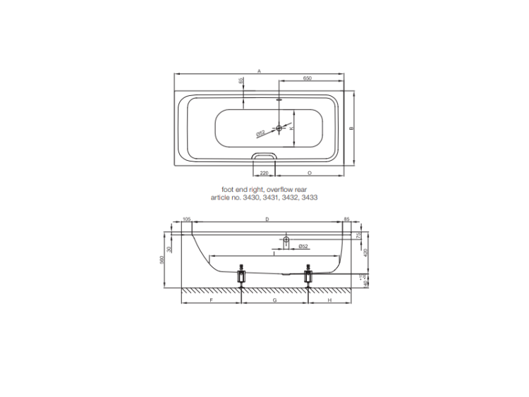 Ванна, Bette, BetteSelect, ширина, мм-1700, глубина, мм-750, высота, мм-420, водоизмещение (л)-151, форма-прямоугольная, слив-перелив-необходимо заказать, диаметр слива, мм-52, ножки-необходимо заказать, цвет-белый Ванна, Bette, BetteSelect, шгв 1700*750*420, цвет-белый