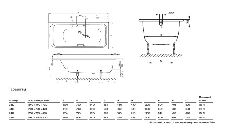 Ванна, Bette, BetteSelect, ширина, мм-1700, глубина, мм-750, высота, мм-420, водоизмещение (л)-151, форма-прямоугольная, слив-перелив-необходимо заказать, диаметр слива, мм-52, ножки-необходимо заказать, материал-сталь, шумоизоляция-есть, цвет-белый Ванна, Bette, BetteSelect, шгв 1700*750*420, цвет-белый
