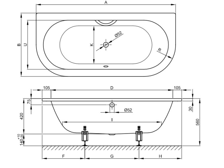 Ванна, Bette, BetteStarlet I, ширина, мм-1850, глубина, мм-850, высота, мм-420, водоизмещение (л)-164, тип установки-пристенный, форма-овальная, слив-перелив-необходимо заказать, диаметр слива, мм-52, ножки-необходимо заказать, цвет-белый Ванна, Bette, BetteStarlet I, шгв 1850*850*420, цвет-белый