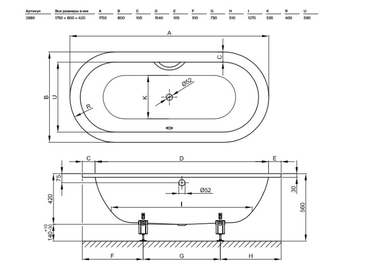 Ванна, Bette, BetteStarlet Oval, ширина, мм-1750, глубина, мм-800, высота, мм-420, водоизмещение (л)-122, форма-овальная, слив-перелив-необходимо заказать, диаметр слива, мм-52, цвет-белый, включает звукопоглощающие пластины, отверстие для арматуры Ванна, Bette, BetteStarlet Oval, шгв 1750*800*420, цвет-белый