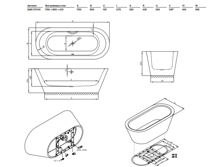 Ванна, Bette, BetteStarlet Oval Silhouette, ширина, мм-1750, глубина, мм-800, высота, мм-420, водоизмещение (л)-139, тип установки-свободностоящая, форма-овальная, панель-есть, слив-перелив-необходимо заказать, диаметр слива, мм-52, цвет-белый, включает звукопоглощающие пластины для снижения уровня шума Ванна, Bette, BetteStarlet Oval Silhouette, шгв 1750*800*420, цвет-белый