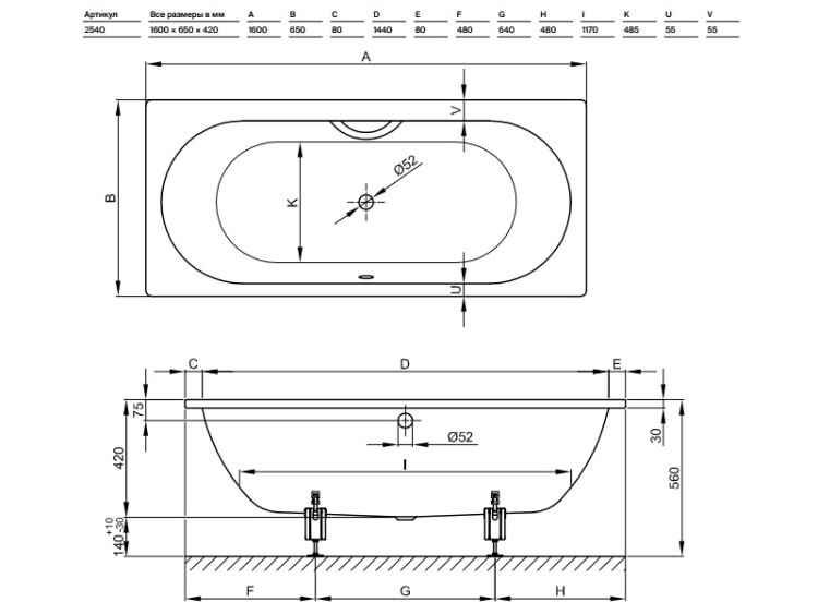 Ванна, Bette, BetteStarlet, ширина, мм-1600, глубина, мм-650, высота, мм-420, водоизмещение (л)-92, форма-прямоугольная, слив-перелив-необходимо заказать, диаметр слива, мм-52, цвет-белый, включает звукопоглощающие пластины для снижения уровня шума Ванна, Bette, BetteStarlet, шгв 1600*650*420, цвет-белый
