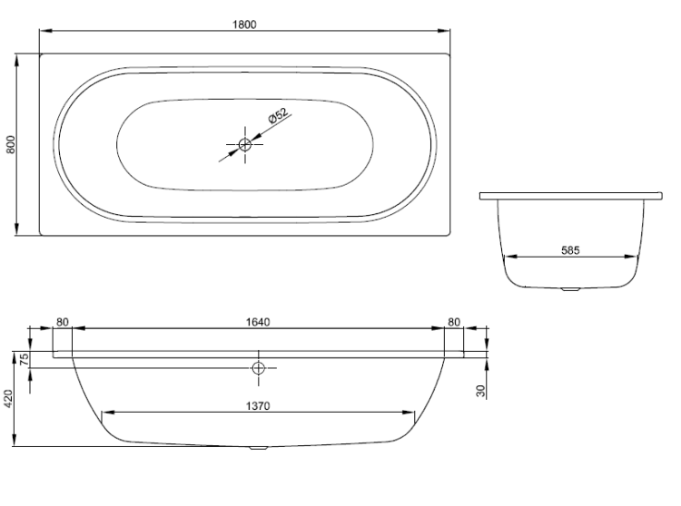 Ванна, Bette, BetteStarlet, ширина, мм-1800, глубина, мм-800, высота, мм-420, водоизмещение (л)-155, форма-овальная, слив-перелив-необходимо заказать, диаметр слива, мм-52, ножки-необходимо заказать, материал-сталь, цвет-белый Ванна, Bette, BetteStarlet, шгв 1800*800*420, цвет-белый