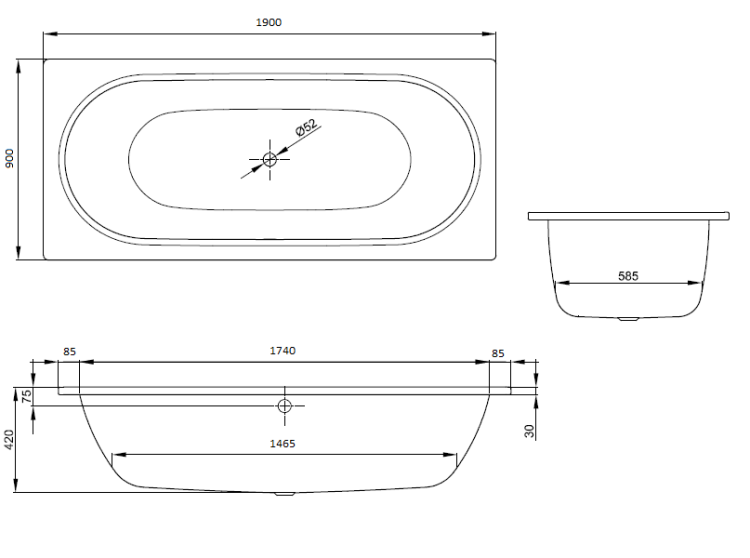 Ванна, Bette, BetteStarlet, ширина, мм-1900, глубина, мм-900, высота, мм-420, водоизмещение (л)-205, форма-овальная, слив-перелив-необходимо заказать, диаметр слива, мм-52, ножки-необходимо заказать, материал-сталь, цвет-белый Ванна, Bette, BetteStarlet, шгв 1900*900*420, цвет-белый