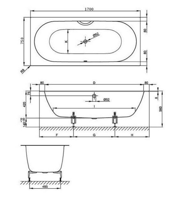 Ванна, Bette, BetteStarlet Spirit, ширина, мм-1700, глубина, мм-750, высота, мм-420, водоизмещение (л)-122, тип установки-встраиваемый, форма-прямоугольная, слив-перелив-необходимо заказать, диаметр слива, мм-52, ножки-необходимо заказать, материал-сталь-эмаль, вид грязеотталкивающего покрытия-BetteGlasur® Plus, включает звукопоглощающие пластины для снижения уровня шума, цвет-белый Ванна, Bette, BetteStarlet Spirit, шгв 1700*750*420, BetteGlasur® Plus, цвет-белый