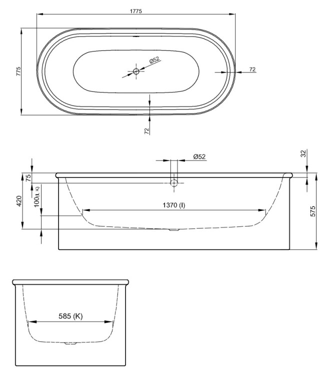 Ванна, Bette, BetteSuno Oval, ширина, мм-1775, глубина, мм-775, высота, мм-420, водоизмещение (л)-155, тип установки-отдельностоящий, форма-овальная, панель-есть, слив-перелив-необходимо заказать, диаметр слива, мм-52, включает звукопоглощающие пластины. материал-сталь, цвет-Salvia Ванна, Bette, BetteSuno Oval, шгв 1775*775*420, цвет-Salvia