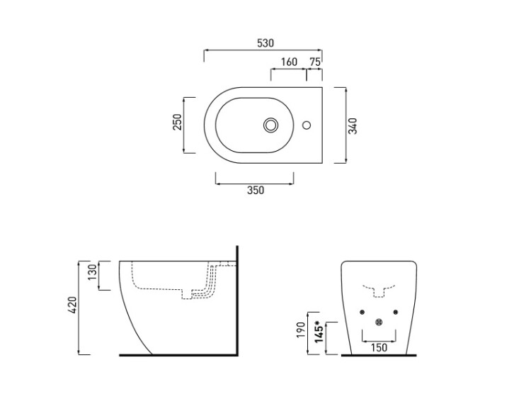 Биде, CIELO, Smile, тип установки-напольный/пристенный, ширина, мм-340, глубина, мм-530, высота, мм-420, форма чаши-овальная, отверстия для смесителя-1, материал-керамика, крепления в комплекте, цвет-Gloss White, с переливом Биде, CIELO, Smile, напольный/пристенный, шгв 340*530*420, цвет-Gloss White
