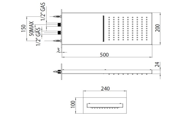Размер верхнего душа, мм | 200*500 |