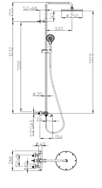 Душевая стойка, Bossini, ELIOS, смеситель-в комплекте, тип открывания воды-двухвентильный, тип регулирования воды-термостатический картридж, излив-есть, верхний душ-есть, форма верхнего душа-круглая, размер верхнего душа,мм-250, материал ABS пластик, держатель верхнего душа-есть, вынос, мм-320, количество режимов верхнего душа-1, тип струи-дождь, размер штанги, мм-1232, ручной душ-в комплекте, с поворотным держателем, количество режимов ручного душа-1, тип струи-дождь, шланг-есть Cromolux, размер шланга, мм-1500, материал шланга-армированный нейлон, цвет-хром Душевая стойка, Bossini, ELIOS, цвет-хром