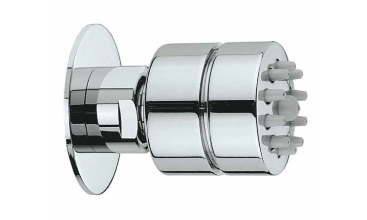 Форсунка, Bossini, Tondo Gom, боковая, поворотная, форма-круглая, диаметр,мм-34, струя-моросящий дождь, материал-латунь, самоочищающаяся, цвет-хром Форсунка, Bossini, Tondo Gom, боковая поворотная, цвет-хром