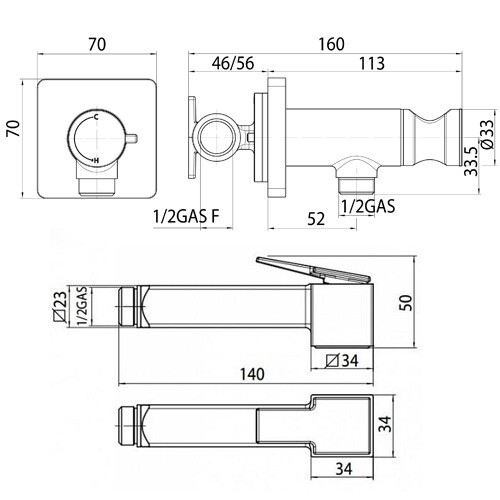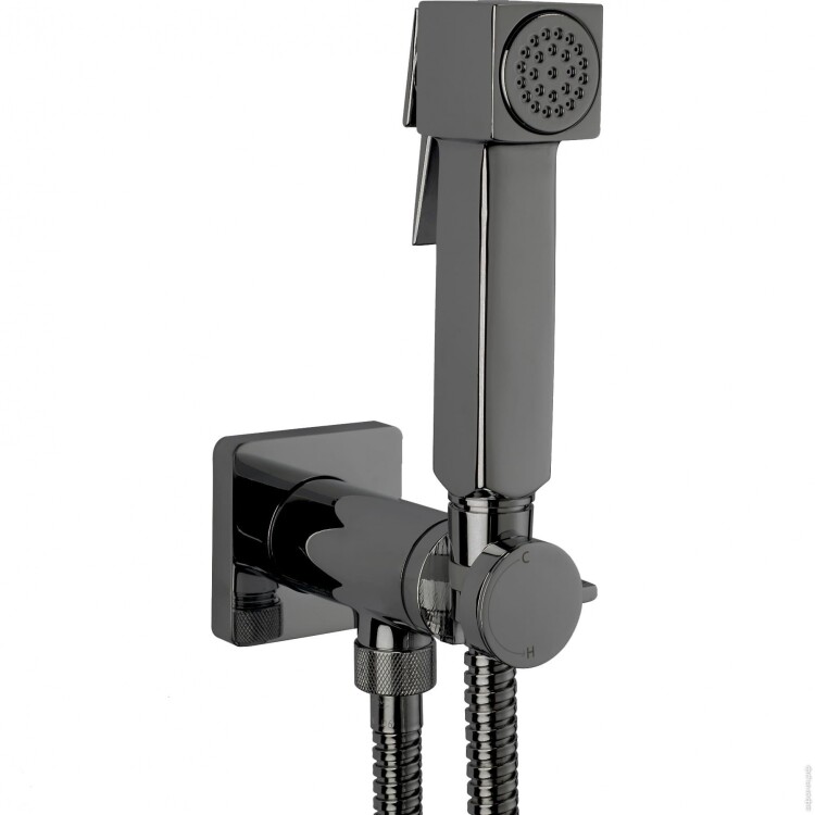 Гигиенический душ, Bossini, Cube-Brass, шланг-есть, длина шланга, мм-1250, держатель-есть, цвет-черный хром, с прогрессивным смесителем Гигиенический душ, Bossini, Cube-Brass, цвет-черный хром