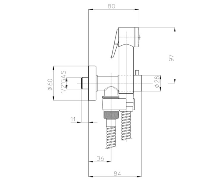Гигиенический душ, Bossini, Paloma, шланг-есть, длина шланга, мм-1250, материал шланга-латунь, держатель-в комплекте, поворотный, материал лейки-ABS пластик, с клапаном подачи, запорный вентиль 1/2"M на керамических дисках, цвет-хром Гигиенический душ, Bossini, Paloma, цвет-хром