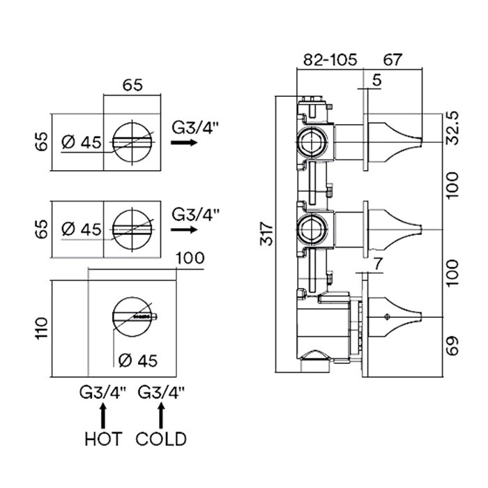 Смеситель для душа, Bossini, APICE, HighFlow, на 2-3 выхода, тип регулирования воды-термостатический картридж, монтаж-настенный встраиваемый, отверстия для монтажа-3, внутренняя часть-необходимо заказать, с отдельными панелями, округло-плоская рукоятка, установка вертикальная/горизонтальная, цвет-черный матовый Смеситель для душа, Bossini, APICE, HighFlow, цвет-черный матовый