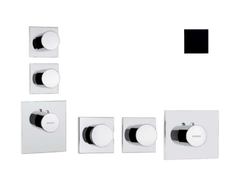 Смеситель для душа, Bossini, CUBE, HighFlow, тип открывания воды-вентильный, тип регулирования воды-термостатический картридж, монтаж-настенный встраиваемый, отверстия для монтажа-3, внутренняя часть-необходимо заказать, с отдельными панелями, круглая рукоятка, установка вертикальная/горизонтальная, цвет-черный матовый Смеситель для душа, Bossini, CUBE, HighFlow, цвет-черный матовый