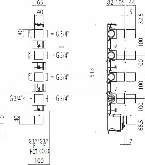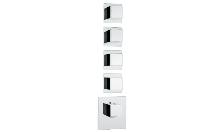 Смеситель для душа, Bossini, CUBE, HighFlow, тип регулирования воды-термостатический картридж, монтаж-настенный встраиваемый, отверстия для монтажа-5, внутренняя часть-необходимо заказать, с отдельными панелями, квадратная рукоятка, установка вертикальная/горизонтальная, цвет-хром Смеситель для душа, Bossini, CUBE, HighFlow, цвет-хром